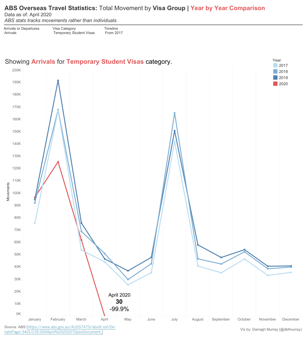 Randomly, I was looking for some arrival and departure data for international students in Australia, seeking to test the theory that there had not been any mass scale departures of overseas students since Australia declared COVID-19 a pandemic.